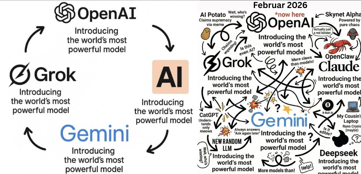 Allein im Februar wurden knapp 20 neue KI-Modelle veröffentlicht. Dazu kam OpenClaw, der Konflikt zwischen Anthropic, dem Pentagon und OpenAI, sowie tausende weitere Neuigkeiten. KI entwickelt sich mittlerweile in zu viele Bereiche gleichzeitig zu schnell. Gesundheit, Bildung, Recht, Softwareentwicklung, Agenten, Robotik, Verteidigung, kreative Berufe...