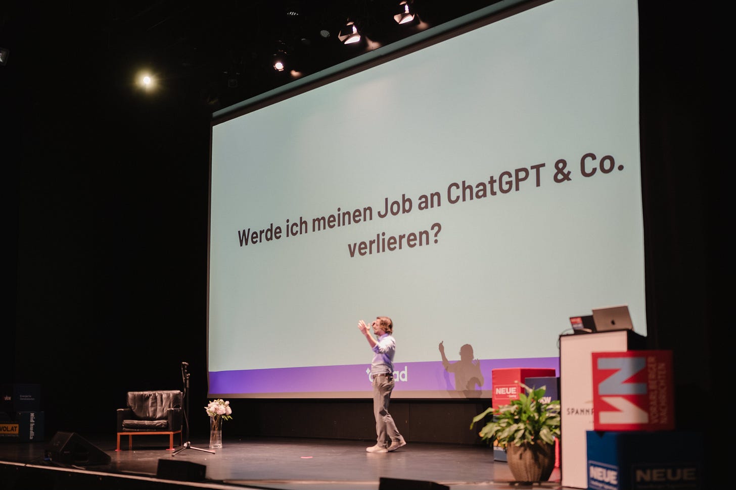 Wir haben auf unserer Event-Reihe ganz viele Fragen zu KI-Tools beantwortet, über Fähigkeiten der Zukunft diskutiert, über Ängste und Chancen gesprochen. Egal welche Frage aus dem Publikum kam, ob technisch, strategisch oder persönlich, Lukas hat jeder Antwort einen sehr menschlichen Touch gegeben. Er hat immer wieder daran erinnert, dass hinter all der Technologie Menschen stehen, die verstanden, gehört und abgeholt werden wollen. Daher habe ich ihn gefragt, ob er die Abschlussworte für diese Ausgabe übernehmen möchte.