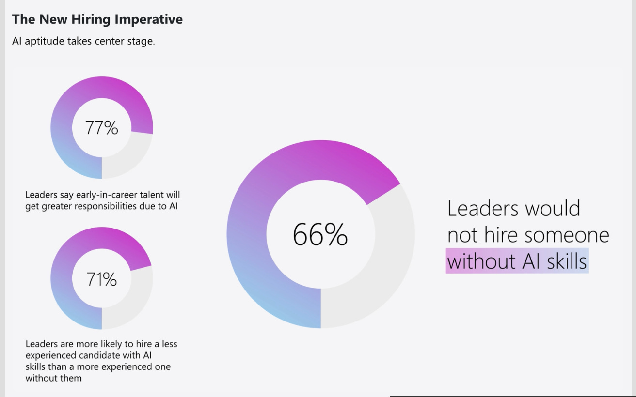 Aber technische Kompetenz allein reicht nicht. Neulich habe ich mit einem Jobsuchenden gesprochen, der sich nicht sicher war, ob er die KI-Fähigkeiten, die er sich gerade privat aneignet, in seinen Lebenslauf schreiben soll. Lustigerweise hatte ich am Tag zuvor in einer Runde mit Personalverantwortlichen genau darüber gesprochen und gesehen, wie sehr sich Unternehmen Mitarbeitende wünschen, die diese Fähigkeiten mitbringen. Aber nicht als stille Experten, die im Verborgenen arbeiten (wir erinnern uns an unsere Secret Cyborgs). Sondern als Menschen, die sagen: „Schaut mal, was ich herausgefunden habe. Soll ich euch zeigen, wie das geht?”