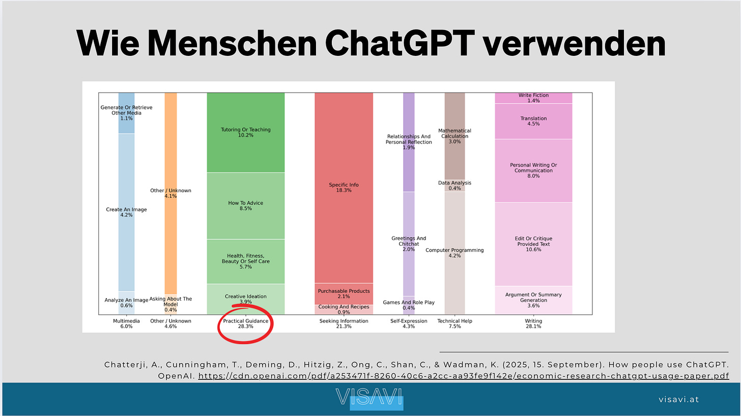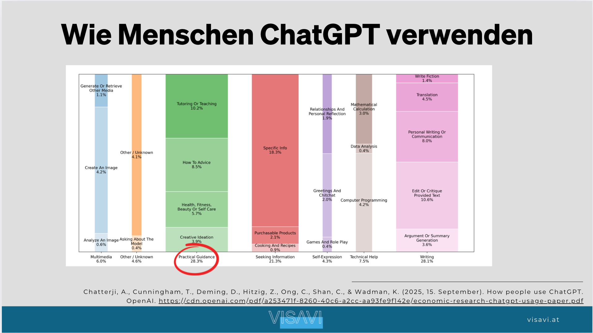 ⁷ Chatterji, A., Cunningham, T., Deming, D., Hitzig, Z., Ong, C., Shan, C., & Wadman, K. (2025, 15. September). How people use ChatGPT. OpenAI. https://cdn.openai.com/pdf/a253471f-8260-40c6-a2cc-aa93fe9f142e/economic-research-chatgpt-usage-paper.pdf