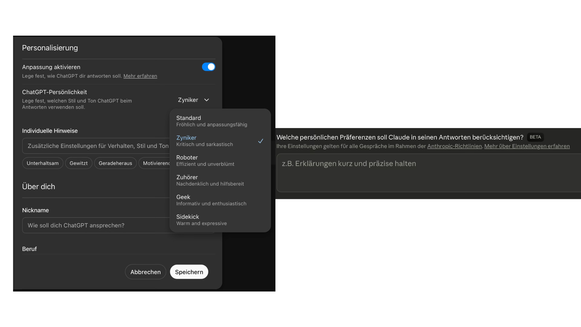 Gerade weil diese Bestätigung so verführerisch ist, lohnt es sich, den eigenen Umgang mit den Tools bewusst zu gestalten. Wir können Modelle so einstellen, dass sie uns nicht nur zustimmen, sondern auch widersprechen, hinterfragen und Feedback geben. Genau darum geht es im nächsten Abschnitt: Wie wir ChatGPT & Co. von einer reinen Antwortmaschine zu einer echten Co-Intelligenz machen.